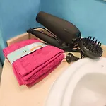The apartment includes a balcony, a terrace, and a kitchen with climate control for utmost comfort. A highlight of the accommodation for guests is the presence of hair dryers and towels in the bathroom. Additionally, you'll find a walk-in shower and a separate toilet.